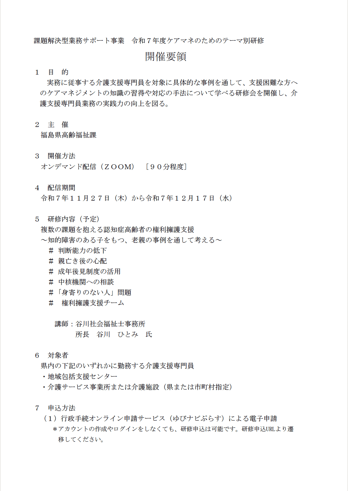 【R7No.31】課題解決型業務サポート事業 令和7年度ケアマネのためのテーマ別研修のお知らせ